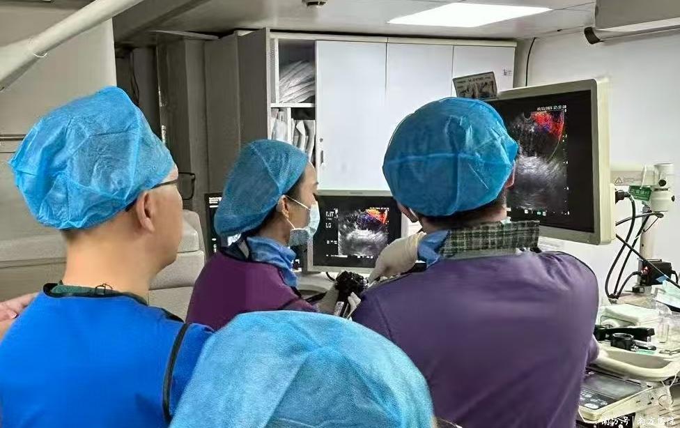 面对这一困难,刘思德教授、罗晓蓓博士团队决定迎难而上,采用一项国内前沿技术——超声内镜引导下胃肠吻合术(EUS-GE)。这项手术技术壁垒极高,要求术者在内镜和超声的双重引导下,精准穿刺胃壁与空肠,并植入支架建立“消化道立交桥”,稍有不慎就可能导致严重并发症。