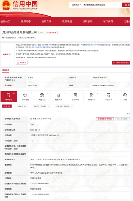 近日股票配资亲身经历,黔西市能源局对贵州黔西能源开发有限公司作出行政处罚决定,因该公司违反《中华人民共和国安全生产法》有关规定,被处以罚款人民币叁万元整(¥30,000.00)。