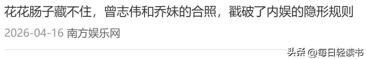南方娱乐网——花花肠子藏不住,曾志伟和乔妹的合照,戳破了内娱的隐形规则
